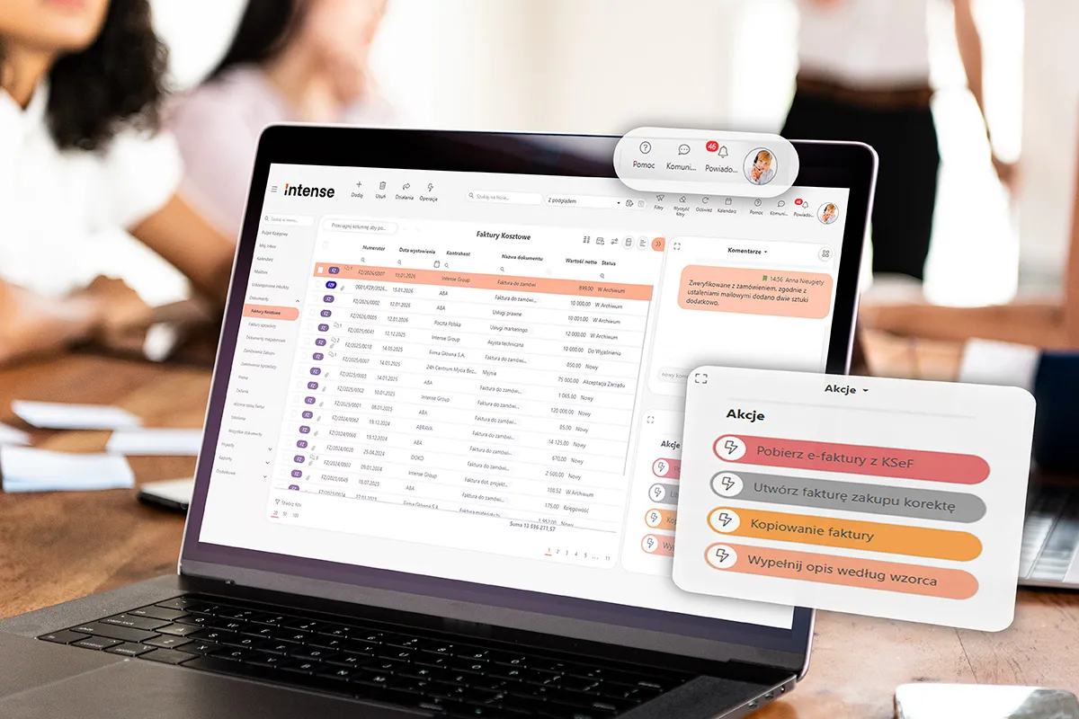 Warto pamiętać, że KSeF zapewnia jedynie formalną, techniczną poprawność dokumentu XML, ignorując logikę biznesową przedsiębiorstwa. Tymczasem to właśnie na poziomie systemów klasy BPM (Business Process Management) i obiegu dokumentów, rozstrzyga się, czy KSeF będzie dla firmy kolejnym uciążliwym obowiązkiem, czy też sygnałem do wprowadzenia automatyzacji. Nowoczesne systemy, jak platforma Intense, pozwalają na nałożenie własnych walidacji biznesowych, takich jak kontrola limitów, weryfikacja zgodności z umowami czy automatyczne przypisywanie faktur do konkretnych centrów kosztów i projektów. Dzięki wykorzystaniu danych zawartych w strukturze XML, faktura trafia bezpośrednio do właściwej osoby w procesie akceptacji, co eliminuje chaos i ręczne sortowanie dokumentów.
